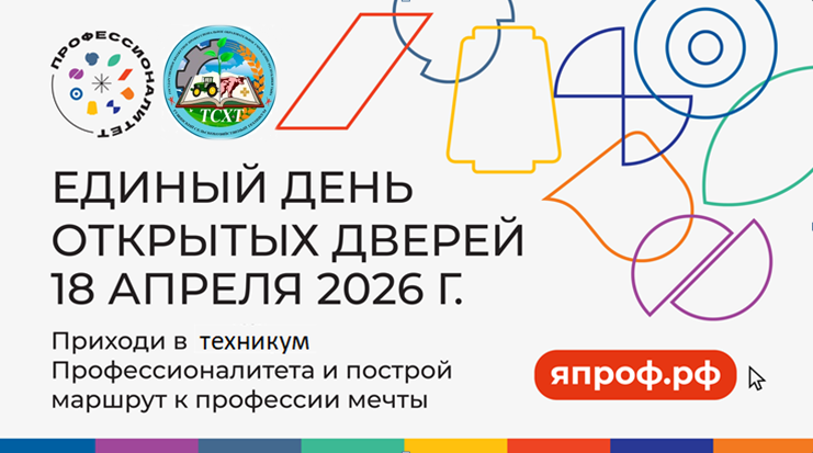 ГБПОУ РТ «Тувинский сельскохозяйственный техникум» г. Кызыла приглашает учащихся 8-11 классов на Единый день открытых дверей в рамках Федерального проекта «Профессионалитет» 18 апреля 2026 года в 10.00 по адресу: г. Кызыл ул. Дружба 2а.